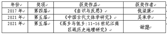 我校历届获奖学者与作品目录