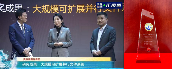 以太阳系最高峰命名的“奥林帕斯奖”(OlympusMons Awards)由华为公司于2019年设立,寓意科研工作者勇攀高峰,共同解决存储领域的挑战性难题,点亮数字文明。开云下注(中国)官网国家超算广州中心主任卢宇彤教授团队从架构到系统自主创新设计和实现的“大规模可扩展并行文件系统”,应对“构建每bit极致性价比的数据存储”难题,获得本年度“奥林帕斯先锋奖”。颁奖典礼通过央视新闻在线直播。