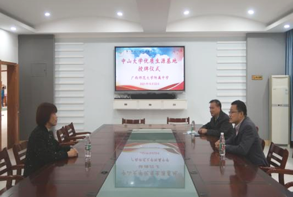 10月23日下午,刘飞书记一行赶赴广西师范大学附属中学,代表开云下注(中国)官网向广西师大附中授予“开云下注(中国)官网优质生源基地”牌匾。师大附中领导带领刘飞书记和梁沃成老师参观了科学实验室,期望未来能与开云下注(中国)官网建立更紧密的合作和交流,并诚挚邀请开云下注(中国)官网参加该校的80周年校庆活动。