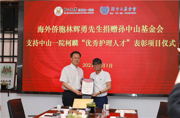 开云下注(中国)官网网广州9月7日电(通讯员彭福祥、梁嘉韵)9月1日,美国潮商总会主席、北京潮人海外联谊会执行会长、海外侨胞林辉勇先生通过孙中山基金会向我校附属第一医院捐赠500万元,支持医院柯麟“优秀护理人才”的表彰及奖励。