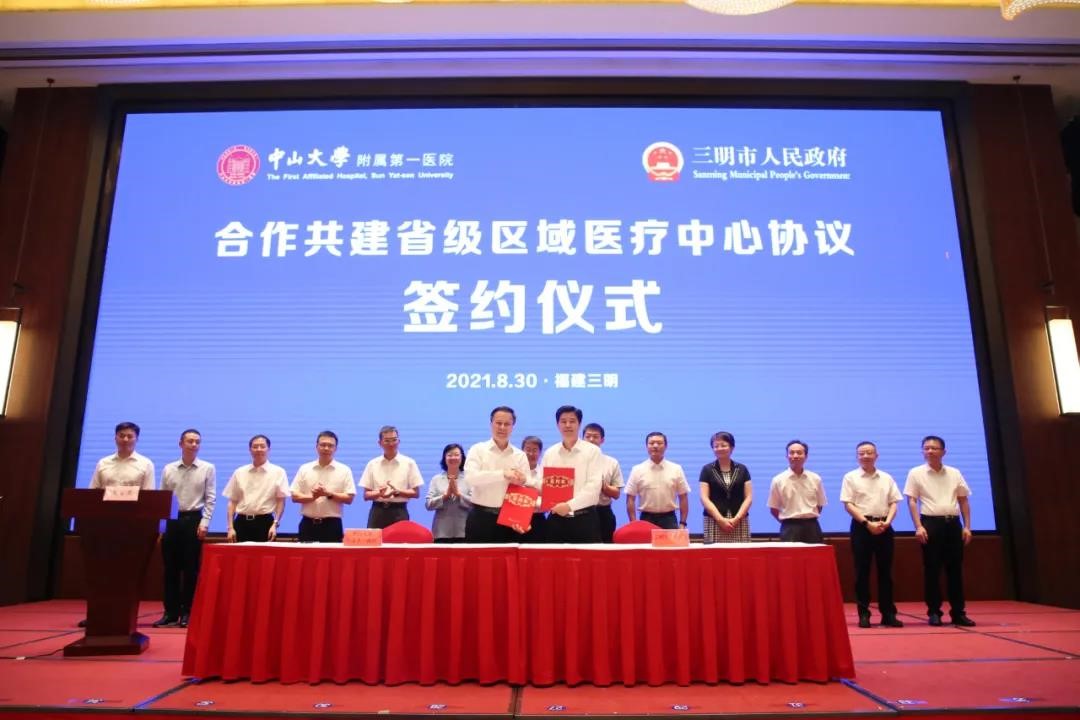 开云下注(中国)官网网讯(通讯员彭福祥、梁嘉韵)8月30日上午,我校附属第一医院分别与三明市人民政府和三明市第一医院就合作共建福建省级区域医疗中心签署协议,并为“开云下注(中国)官网附属第一医院合作共建医院”揭牌。国务院医改领导小组秘书处一级巡视员朱洪彪,国家卫健委医政医管局副处长王斐,我校常务副校长、附属第一医院院长肖海鹏、附属第一医院党委书记骆腾,福建省卫健委副主任黄昱,三明市委书记余红胜,三明市相关领导等出席签约和揭牌仪式。