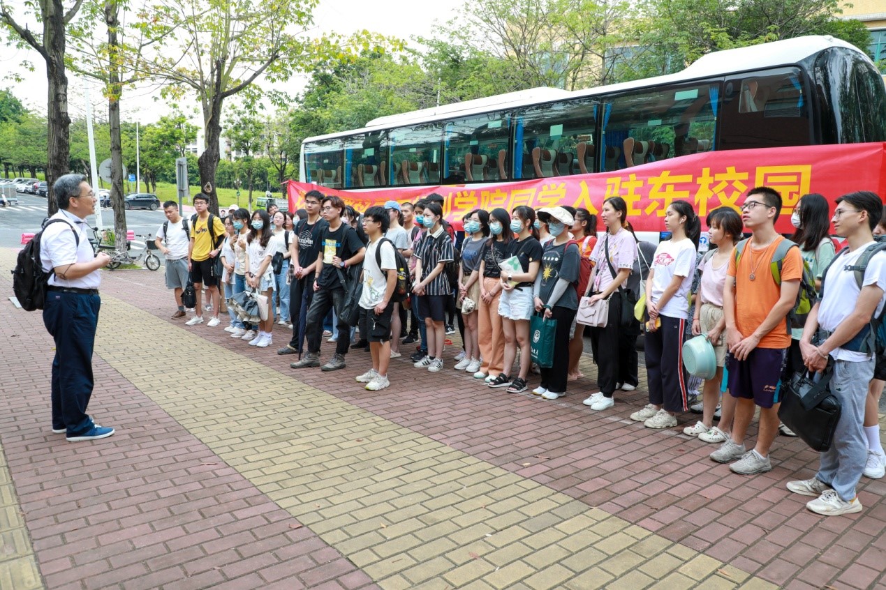 到达东校园,学院老师和志愿者们已经在各调度点就位。当同学们和他们行李达到后,老师们马上带领志愿者投入紧张的工作中,他们在宿舍楼下维持秩序,组织同学们有序卸载行李物品,并及时协调解决临时出现的各种问题。从办理入住,搬运行李,打扫卫生,整理行李……同学们充分感受到东校园的亲切和温暖,一起愉快地融入新环境。