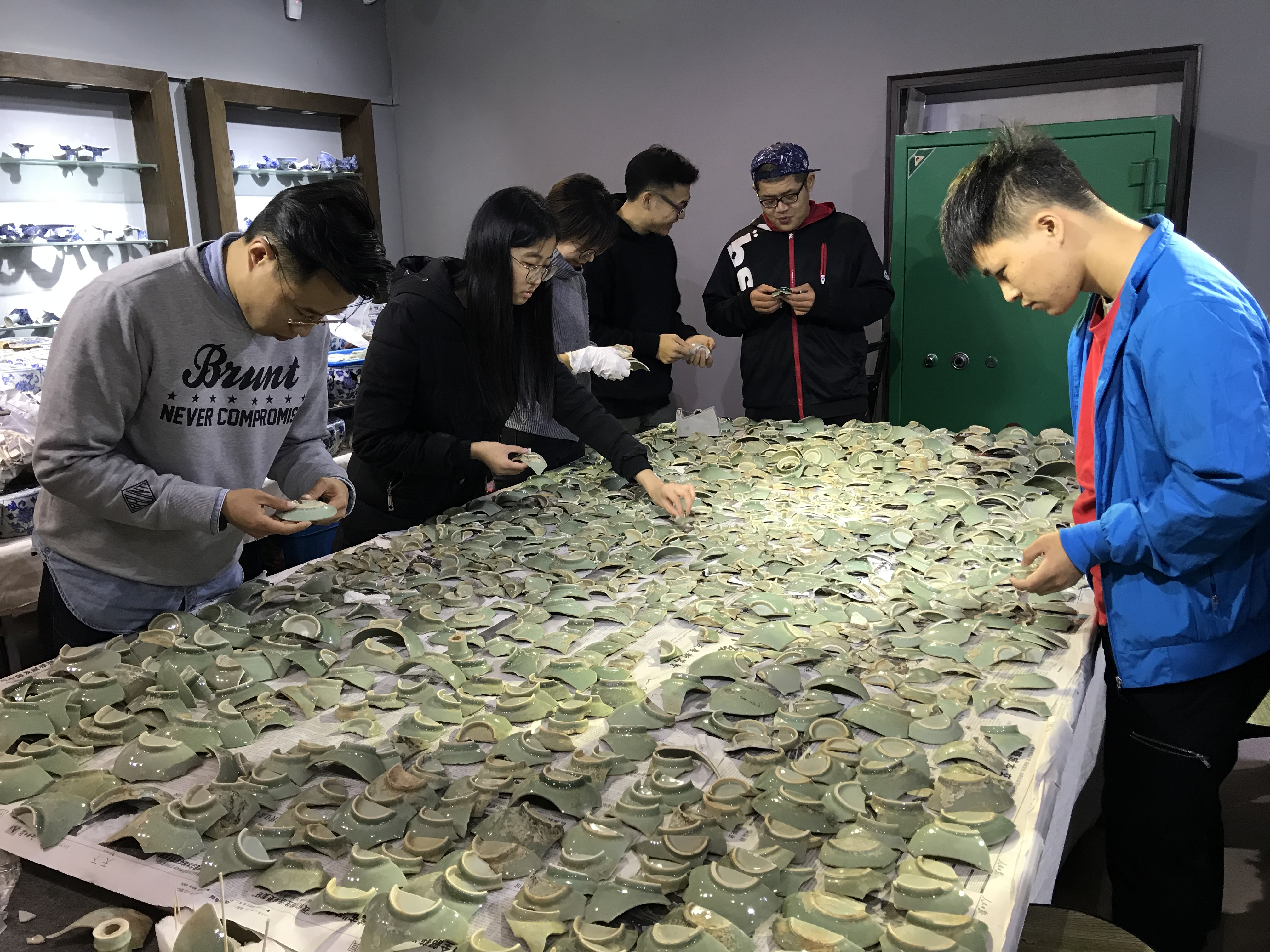 在景德镇考察期间学生学习拼对瓷片
