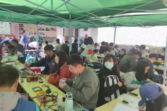 家电小组的校内大维修活动从最初几十人到上百人,再到排不上队通过预约登记由家电小组成员上门维修;随着电子产品技术的更新迭代,从音乐播放器、收音机到后来音响、电脑、电磁炉等多种多样的家用电器,家电小组成员本着对物主们负责的态度,从物品构造结构、电路分析等技术上不断学习、实践和拓展。家电小组还在我校南校园120栋一楼设立“家电工作室”,于固定时间对外开放接修,真正做到学以致用,践行公益精神、服务师生所需。