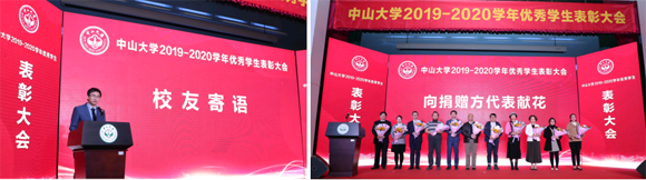 广东光大企业集团有限公司副总裁、岭南学院2006届硕士毕业生陈浩华作为学生奖学金捐赠方代表和校友代表发言。他引用“参天之树,必有其根;环山之水,必有其源”来感谢母校对他的栽培。他对获奖学生表示热烈的祝贺,同时希望大家珍惜在中大的美好时光,认真学习,全面发展,以优异成绩回报社会,回报学校。学生代表向学生奖学金捐赠方代表献花,感谢社会各界对我校事业发展的支持和对中大学子成长成才的关心。