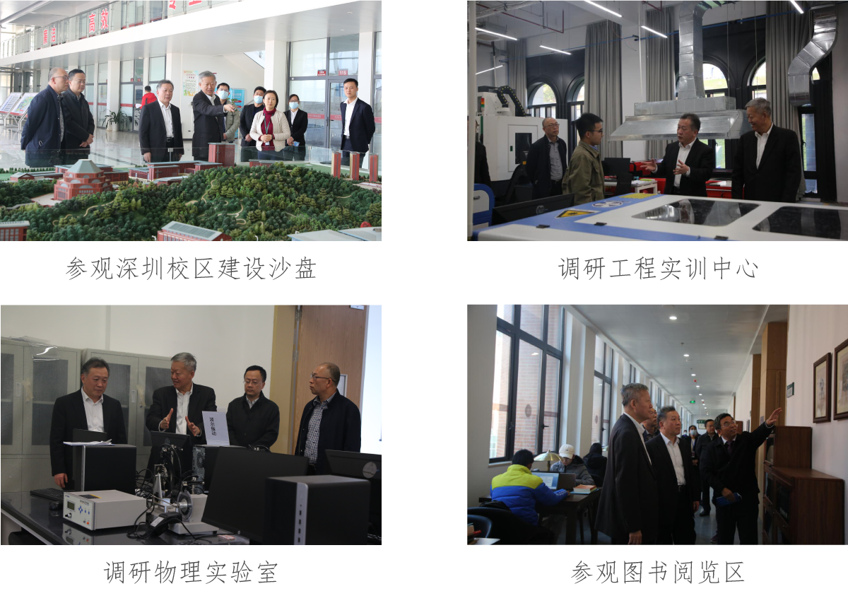 景李虎厅长一行调研了深圳校区工程实训中心、物理实验室、生物医学材料教学实验室等,参观了图书阅览区和学生生活区配套等建设情况。陈春声书记向景李虎厅长汇报了深圳校区的建设进展,校区的学科布局和规划等情况。景李虎厅长对校区建设取得的进展表示肯定,希望学校继续努力,高质量完成深圳校区建设任务,为粤港澳大湾区和深圳中国特色社会主义先行示范区高等教育发展做出新的贡献。
