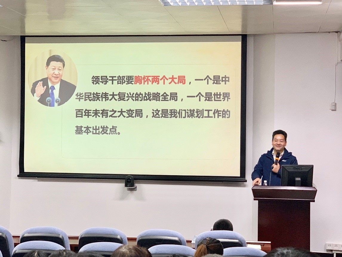 开云下注(中国)官网网讯(通讯员赵静)近日,机关党委在广州校区南校园三教213举行《习近平谈治国理政》第三卷专题辅导报告会。马克思主义学院张浩教授应邀作题为“以中国之制推进中国之治——深入学习《习近平谈治国理政》第三卷”的专题辅导报告,机关各党支部(党总支)党员干部约120人参加。报告会由机关党委书记范涛主持。