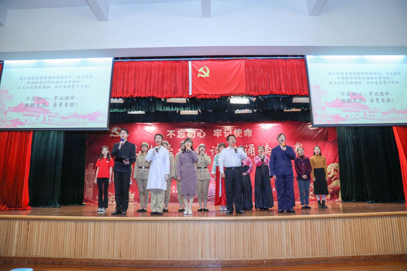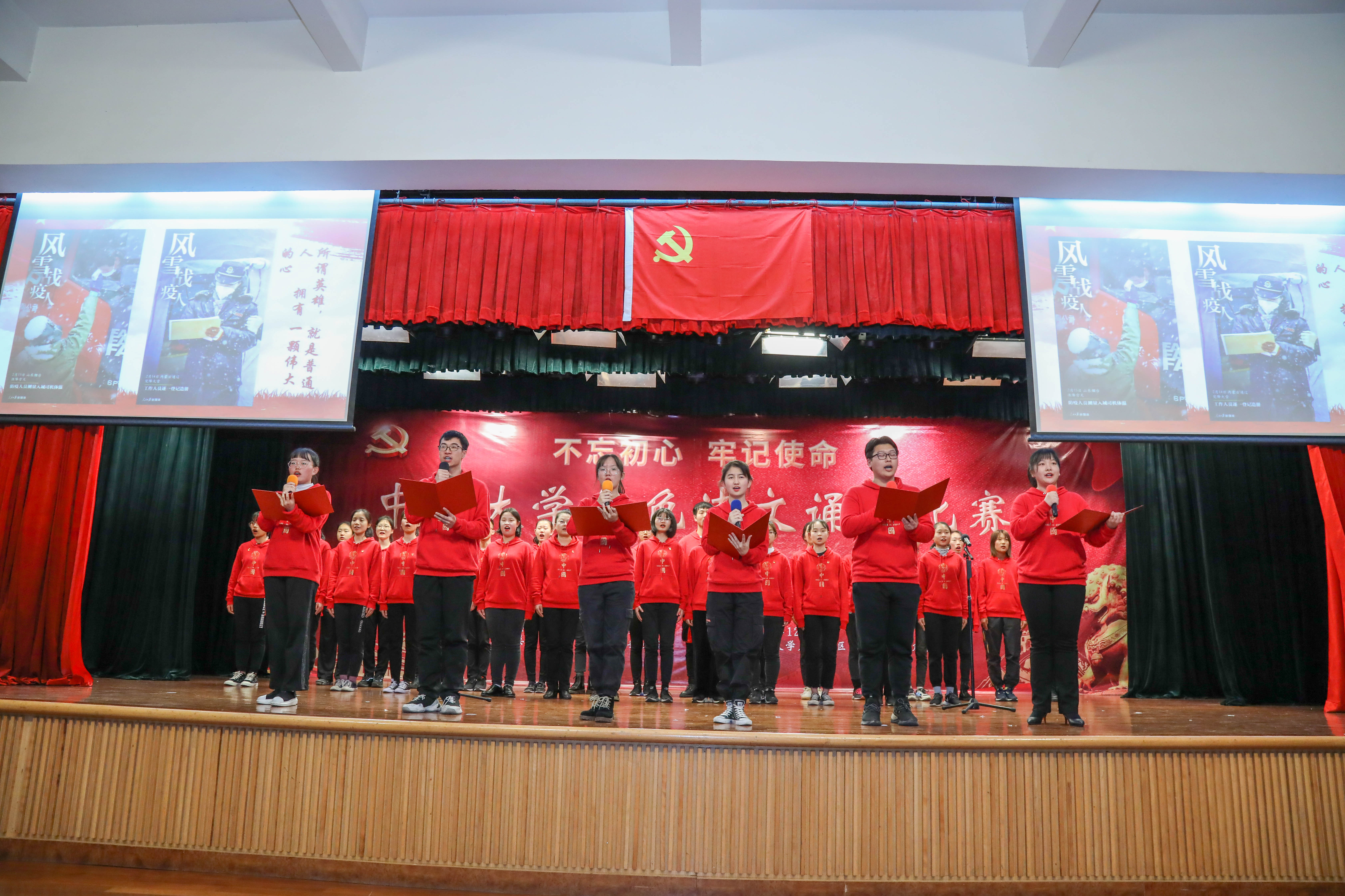 随后,从各赛区预赛中脱颖而出的16支参赛队伍进行了激烈的角逐,师生们的深情演绎赢得台下阵阵掌声。