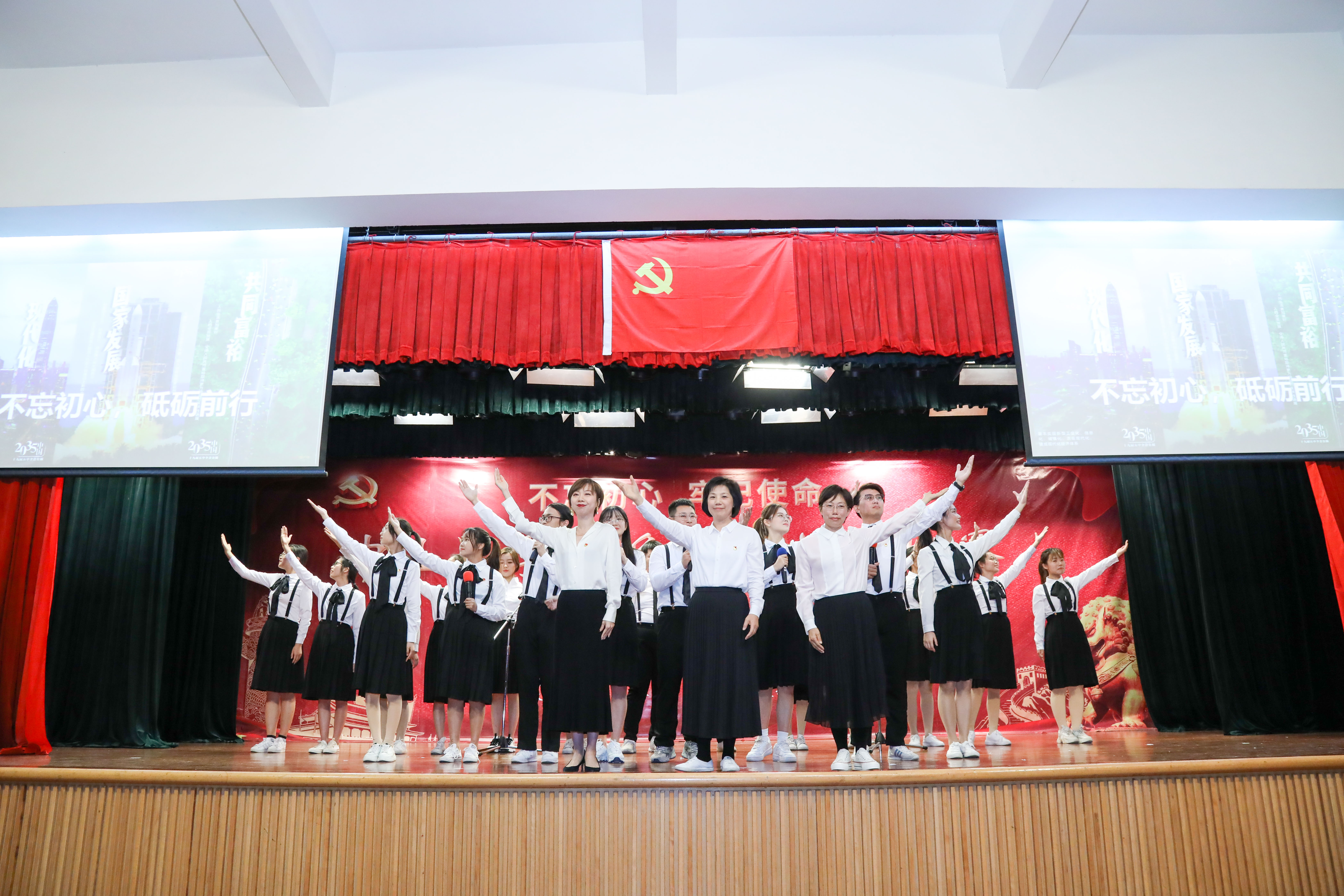 中国语言文学系硕士研究生第一党支部《腾飞的中国》以中国近代以来的历史事件为背景,讲述革命先辈英雄事迹,赞颂中华民族自强不息的奋斗精神和众志成城、坚韧不屈的爱国情怀。
