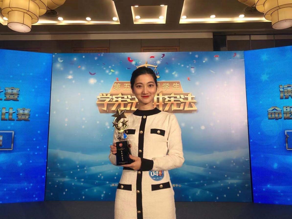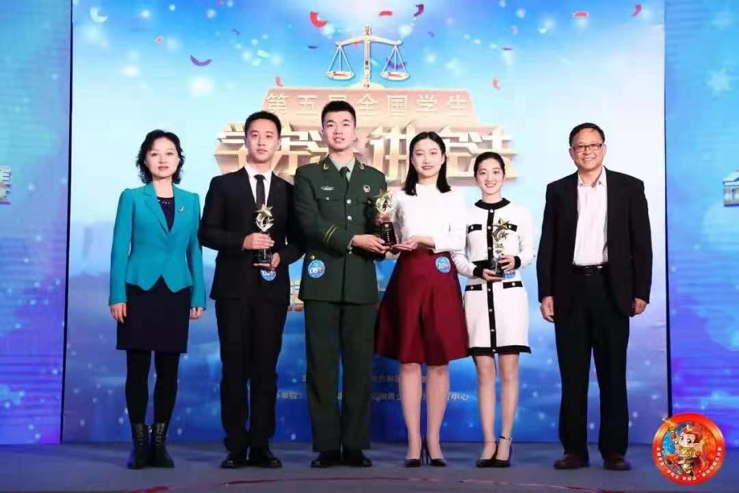 “学宪法 讲宪法”演讲比赛总决赛高校组冠亚季军颁奖,右二为周珈羽同学