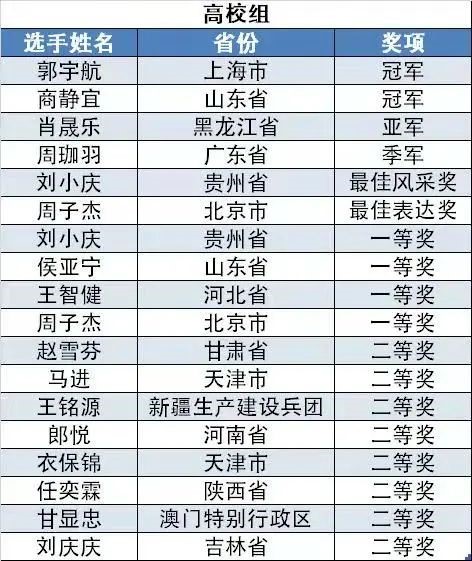 “学宪法 讲宪法”演讲比赛总决赛高校组获奖名单