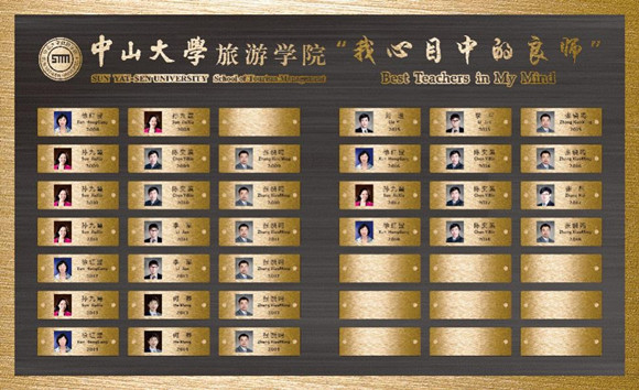 2008-2018年“我心目中的良师”金漆荣誉墙(来源:旅游学院)