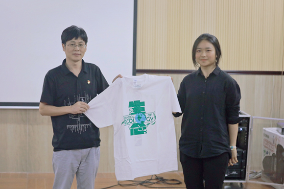 学院本科生全程导师见面会上学生向导师赠送亲手设计的纪念服(来源:生态学院)