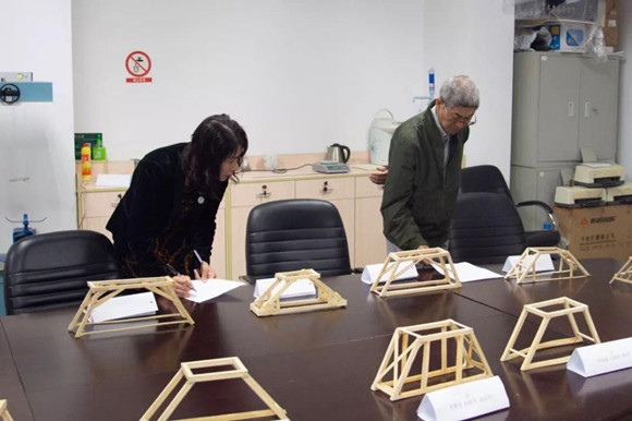 评委老师为力学结构设计竞赛作品打分(来源:航空航天学院)