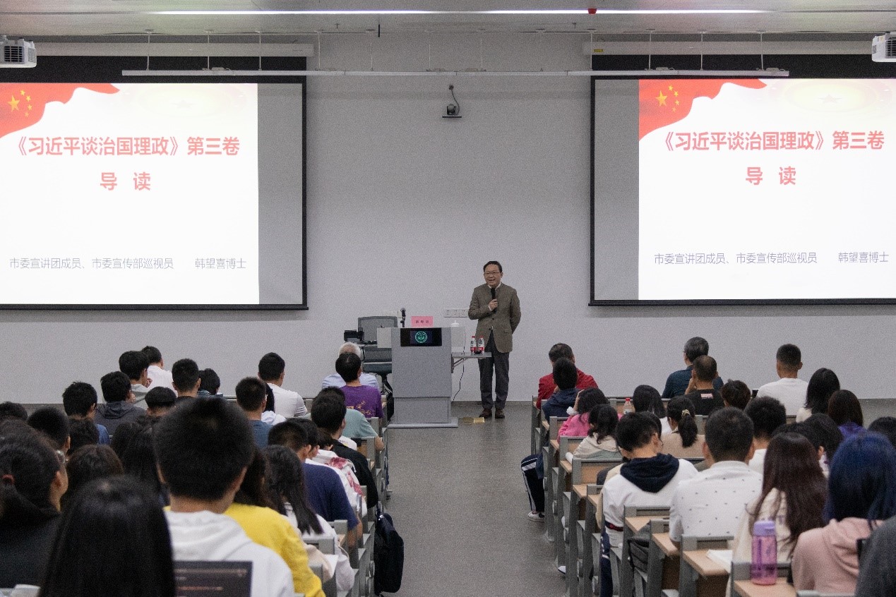 开云下注(中国)官网网广州11月19日电(记者 吴立坚 蒋静)11月17日,我校在深圳校区举行《习近平谈治国理政》第三卷宣讲会,邀请了深圳市委宣讲团成员、深圳市委宣传部巡视员韩望喜同志作宣讲。深圳校区5个学院、2个附属医院的党委理论学习中心组成员、师生党员代表共300余人参加宣讲会。宣讲会由深圳校区管委会主任罗愈业主持。