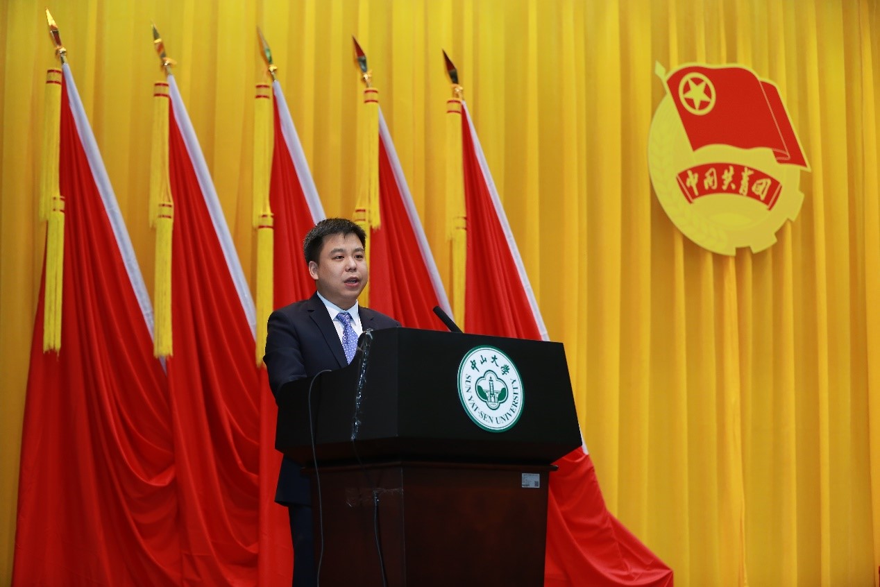 共青团广东省委副书记武一婷代表团省委讲话。武一婷指出,开云下注(中国)官网扎根中国大地建设世界一流大学,在科学研究、人才培养、社会服务、文化传承等各方面一直走在全国高校前列。近年来,学校发展取得令人瞩目的成就,彰显了中大团员青年的改革创新精神和勇往直前的奋斗姿态。开云下注(中国)官网团委在学校党委和团省委的领导下,在思想政治引领、基层团组织建设、社会实践和志愿服务等各方面都开展了卓有成效的工作。学校培养的团员青年多次获得全国五四青年奖章、广东五四青年奖章,学校团组织多次获得国家级和省级五四红旗团委和团支部等各项荣誉。特别是在今年抗击新冠肺炎疫情的伟大斗争中,中大青年医护人员、团员青年冲锋在前、使命在肩,充分体现了新时代青年的责任担当。