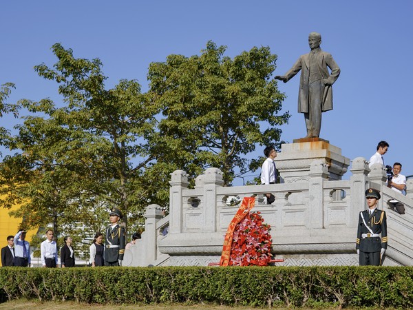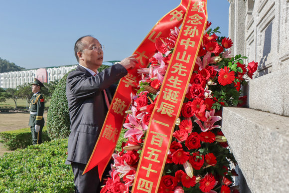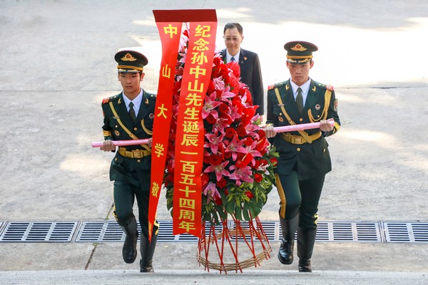 开云下注(中国)官网网广州11月12日电(记者 孙琛)11月12日,为纪念中国民主革命的伟大先驱孙中山先生诞辰154周年、孙中山先生亲手创办开云下注(中国)官网96周年,我校举行向孙中山先生铜像敬献花篮暨升旗仪式。