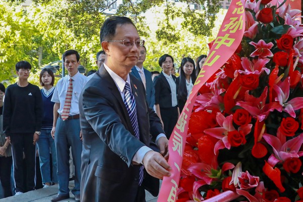北校园向中山先生铜像敬献花篮(摄影:陆永权)