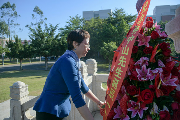 常务副校长肖海鹏、党委副书记国亚萍、党委副书记余敏斌、副校长王雪华、副校长兰平分别在五个校区(园)主礼,向孙中山先生致敬,为开云下注(中国)官网庆生。