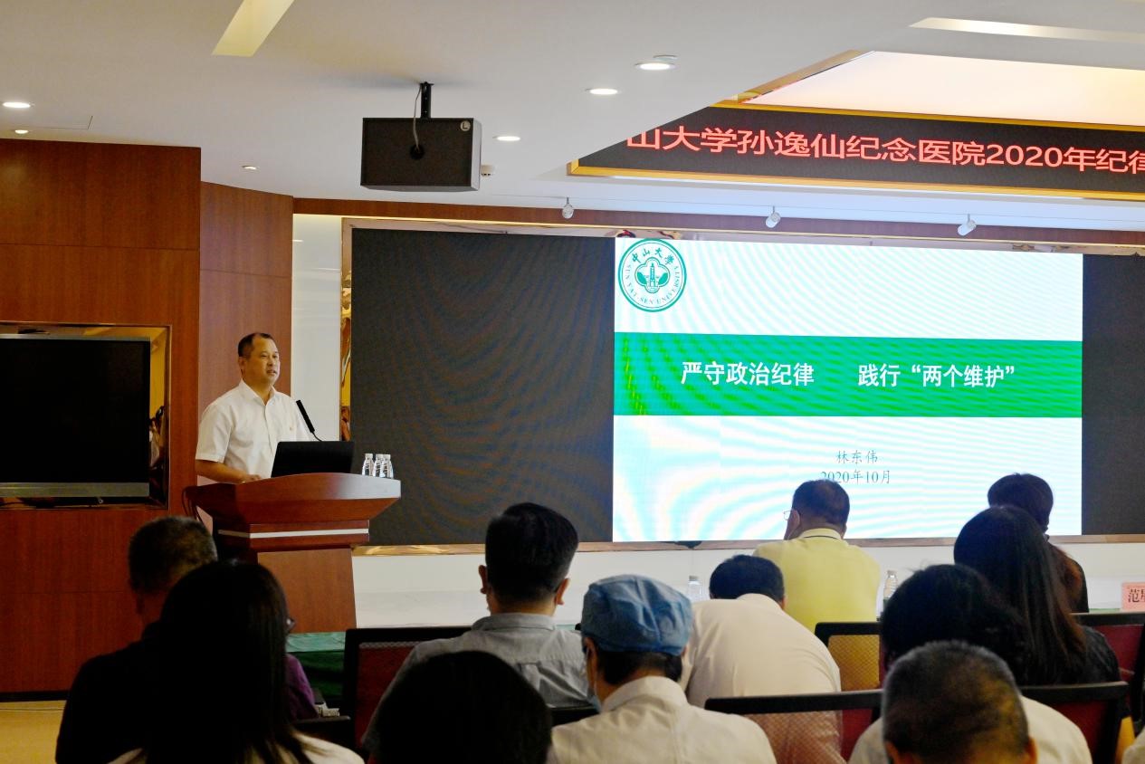 开云下注(中国)官网网10月14日电(通讯员 王晶晶)10月12日下午,孙逸仙纪念医院在院本部举行纪律教育学习月专题报告会。学校党委副书记、纪委书记林东伟作了题为“严守政治纪律,践行‘两个维护’”的专题报告。学校纪委办公室副主任范星星和医院领导班子成员、党委委员、纪委委员、中层干部参加会议。会议由医院党委书记王景峰主持。