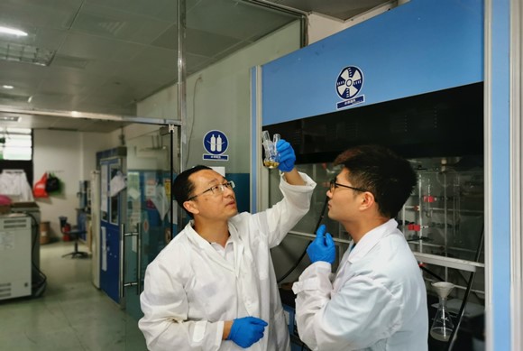 岳军(左一)在实验室开展实验