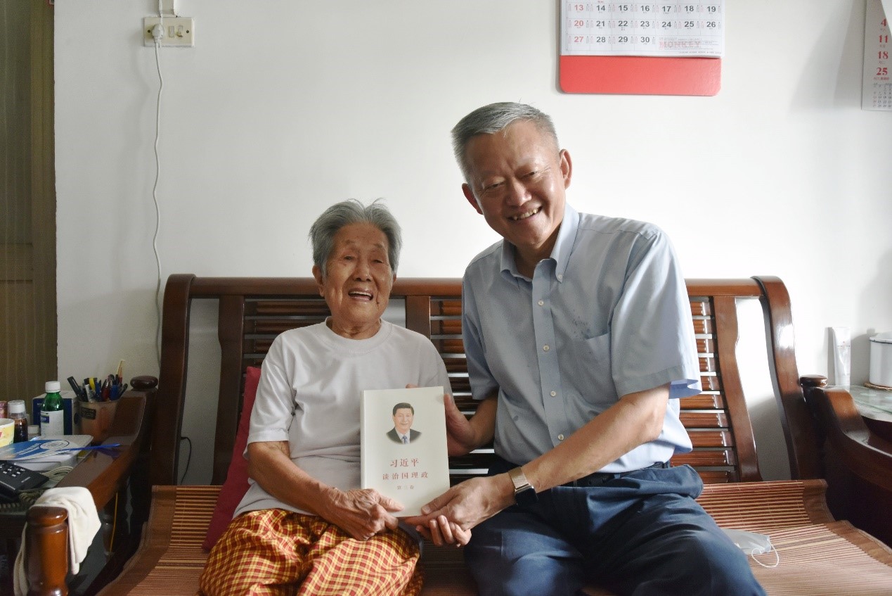 陈春声书记看望慰问抗战老战士李哲并赠书(摄影:徐丽雅)