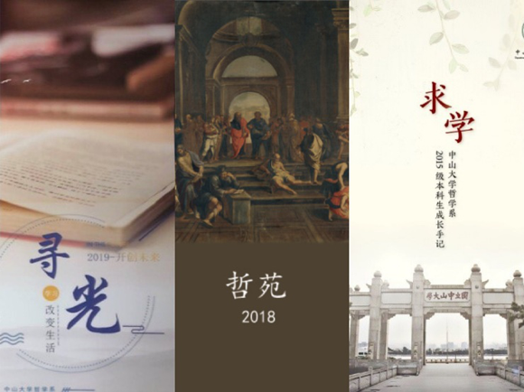 哲学系每年编印三类学生刊物:《寻光》是每一位本科新生都会领取到的专业学习指引读物;《哲苑》收录本科生优秀课程论文及学术随笔;《求学》成长手记则记录了每一届本科毕业生求学、求职的经历,为低年级学生带去师兄师姐的鼓励和支持,营造学术氛围,传承求学精神。