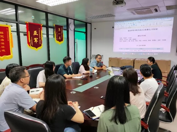 学院党委书记李春荣(左一)主持搬迁工作动员会(来源:海洋科学学院)