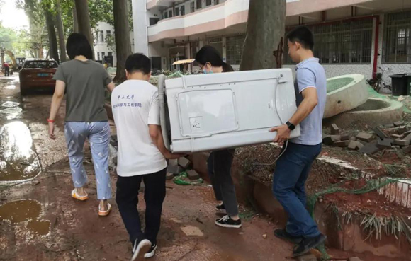 青年教师辅导员石磊和刘志佳帮助同学搬运行李(图片来源:材料科学与工程学院)