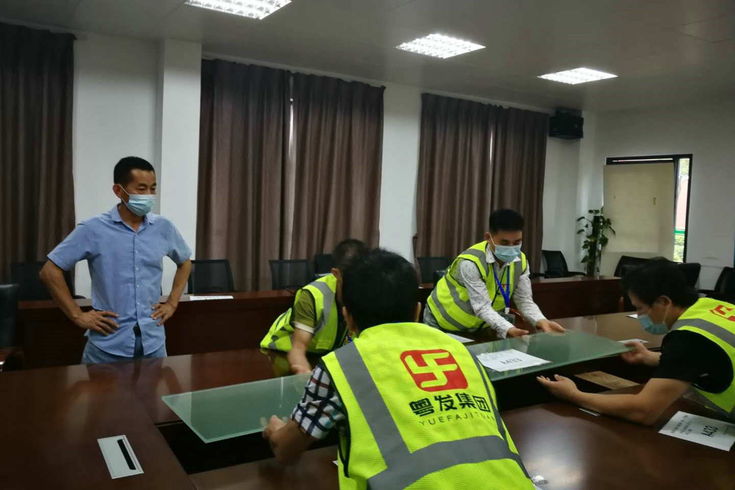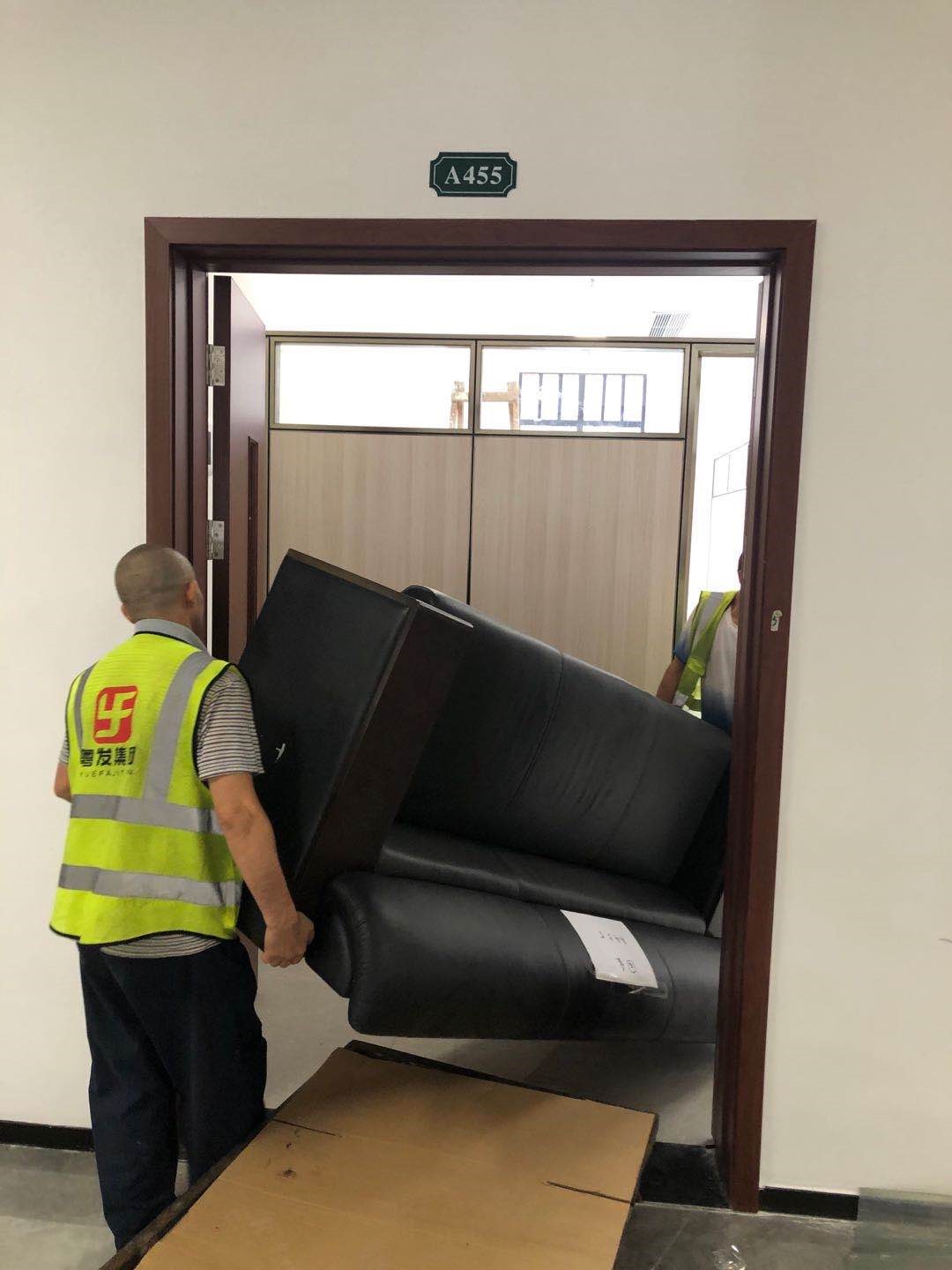 工作人员在搬运办公物品(图片来源:总务处)