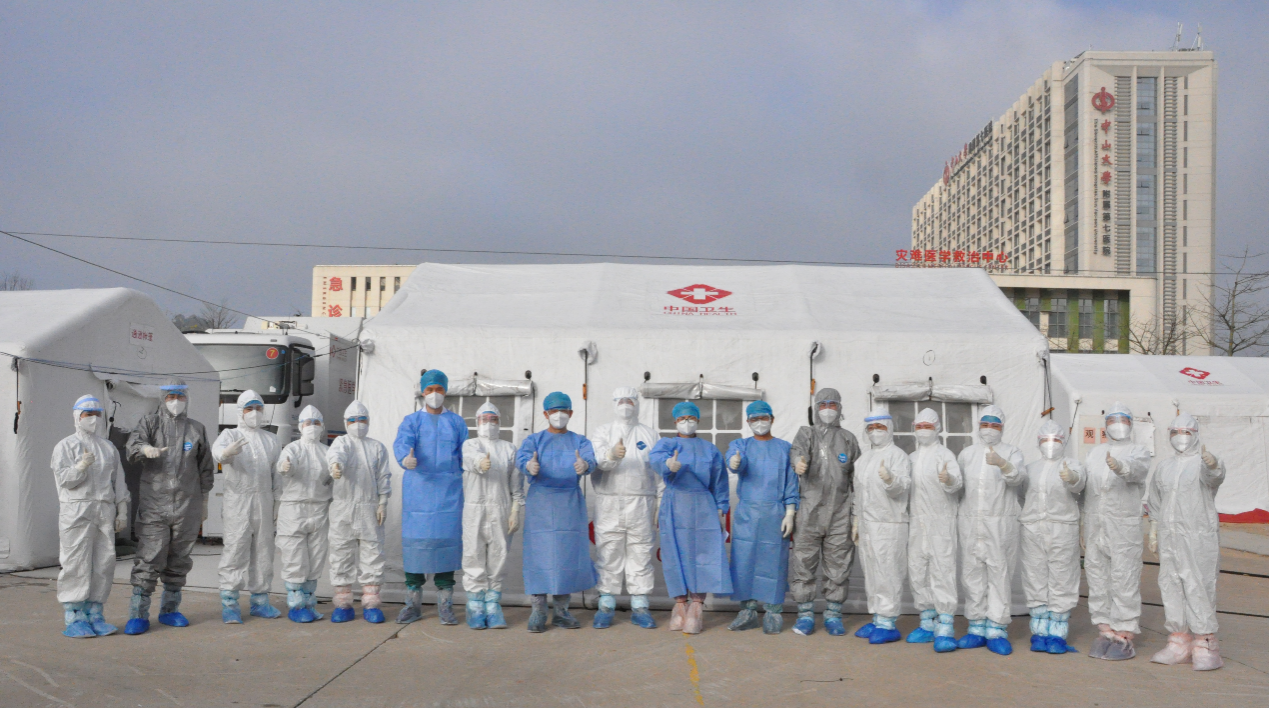 1月22日,附属第七医院用移动医院帐篷和车辆在院外空地上搭建了临时发热门诊,这是“第一战场”,96名医护人员组成第一批发热门诊工作人员,穿上防护服,戴上护目镜,夜以继日地站到了防疫的第一线,他们中间有31位共产党员和11名入党积极分子。1月24日,附属第七医院成立“发热门诊指挥管理工作组”,5位组长中有4位是中共党员。此后,一批批的党员和积极分子加入了“逆行者”的行列中,成为了临时党支部的一员。
