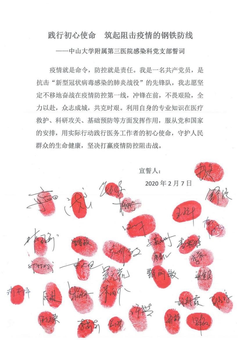 感染科支部委员彭亮、曹红任两院区隔离病房主任,李莉莉、陈苑莉、崔德珍分别为科室护士长和天河、萝岗隔离病区护士长,揭育胜驻扎粤东医院,入党积极分子刘静任发热门诊主任,李学俊、林潮双驰援东莞,驻点东莞市人民医院和汕头大学第一附属医院参与指导救治工作。他们全身心投入到这场战役中,扎根一线,不仅救治患者,还随时执行跟进各项任务,采取各种措施防控疫情。