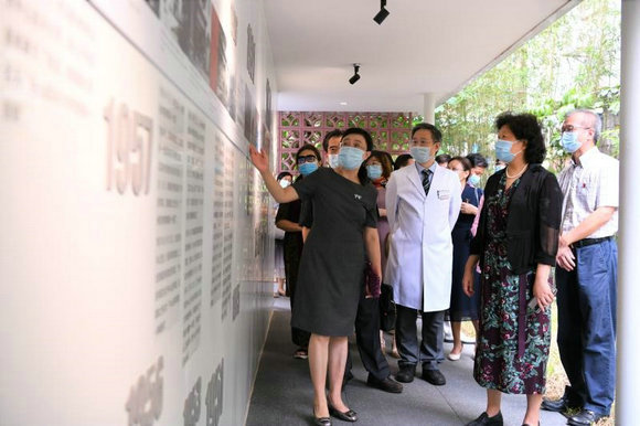 李心副主席一行参观附属第一医院院史文化长廊,了解附属第一医院文化建设和抗疫工作情况(图片来源:附属第一医院)