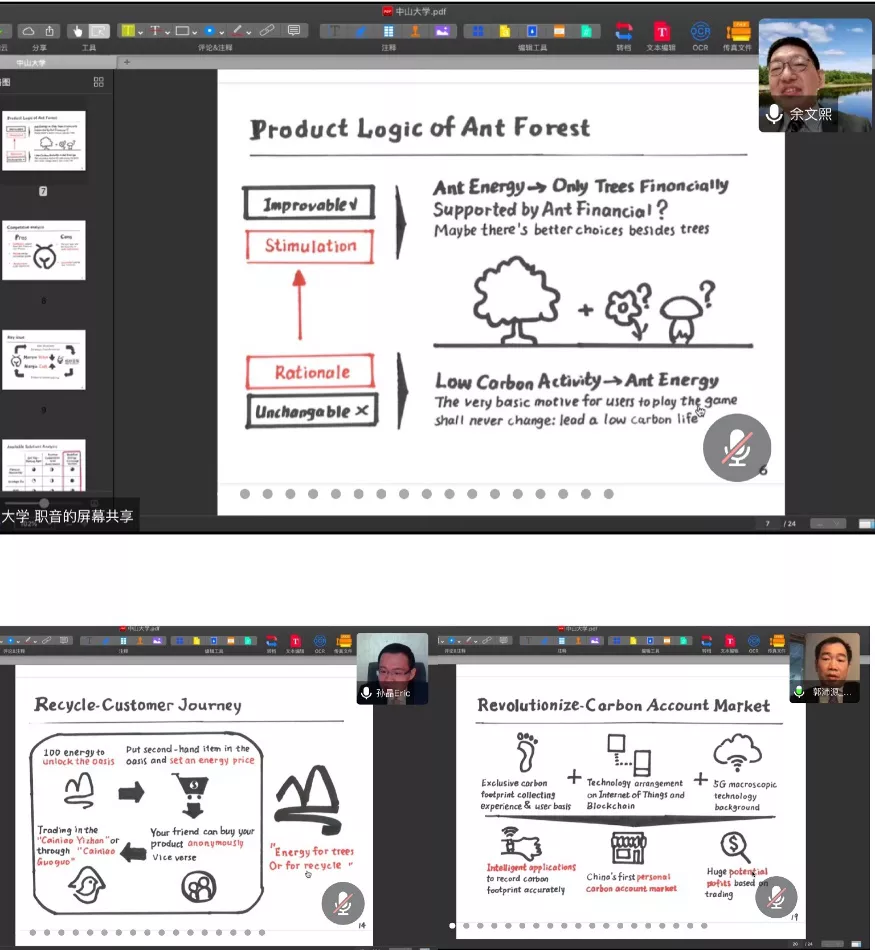 由于疫情的原因,今年汇丰商业案例大赛的比赛方式改为线上形式,赛制较往年也有所变化。学生需要在网络环境下,在6天时间内独立完成全英文案例的阅读分析,并形成英文解决方案、手绘演示文稿、录制解说视频等。往年赛事中提案展示环节、评委问答环节是面对面进行,今年受疫情影响转到线上分别以录制视频和网络会议的形式开展,全程用英文交流。