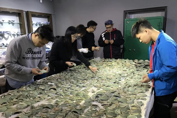 在景德镇开展实践教学期间学生学习拼对瓷片