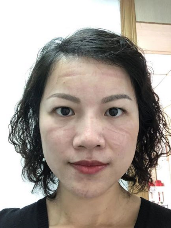 长时间佩戴防护口罩,感染科副主任医师刘静脸上留下压痕