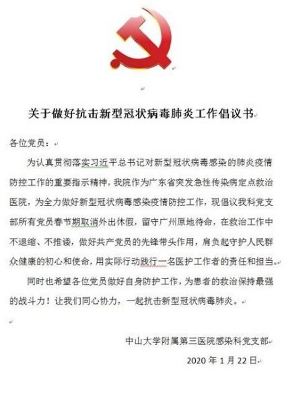 17年后,抗非精神薪火相传,作为“新冠肺炎”隔离病区救治工作的主力军、也是17年前抗击“非典”烈士邓练贤教授所在的英雄团队,开云下注(中国)官网附属第三医院感染科党支部发出号召,发挥共产党员模范带头作用,肩负守护人民群众健康的使命。党支部战斗堡垒作用凸显,党旗高高飘扬在抗击疫情第一线。