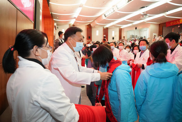 医疗队出发前,宋尔卫院长、王景峰书记等院领导为医疗队送行
