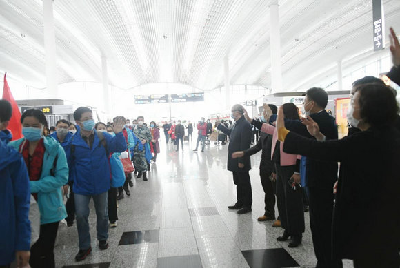 医疗队员与家人同事告别