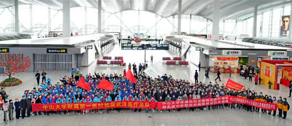 2月6日晚,我校附属第一医院、孙逸仙纪念医院按上级要求,再次组建了由262名医护人员组成的医疗队,驰援武汉。同时出发的还有我校肿瘤防治中心16名医护人员。他们一同乘坐7日下午16时的专机奔赴前线。学校党委副书记、校长罗俊到机场送医疗队出发。