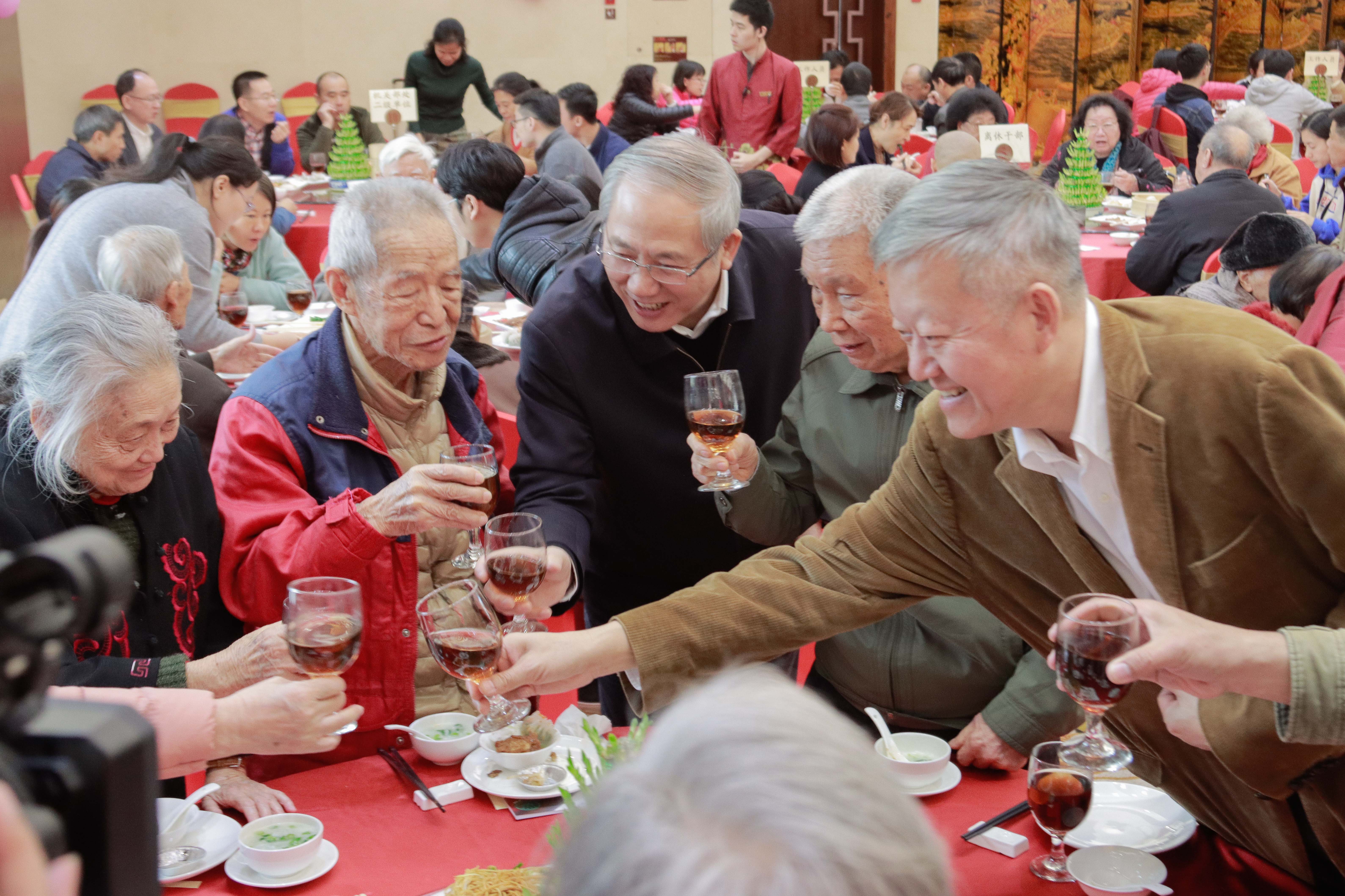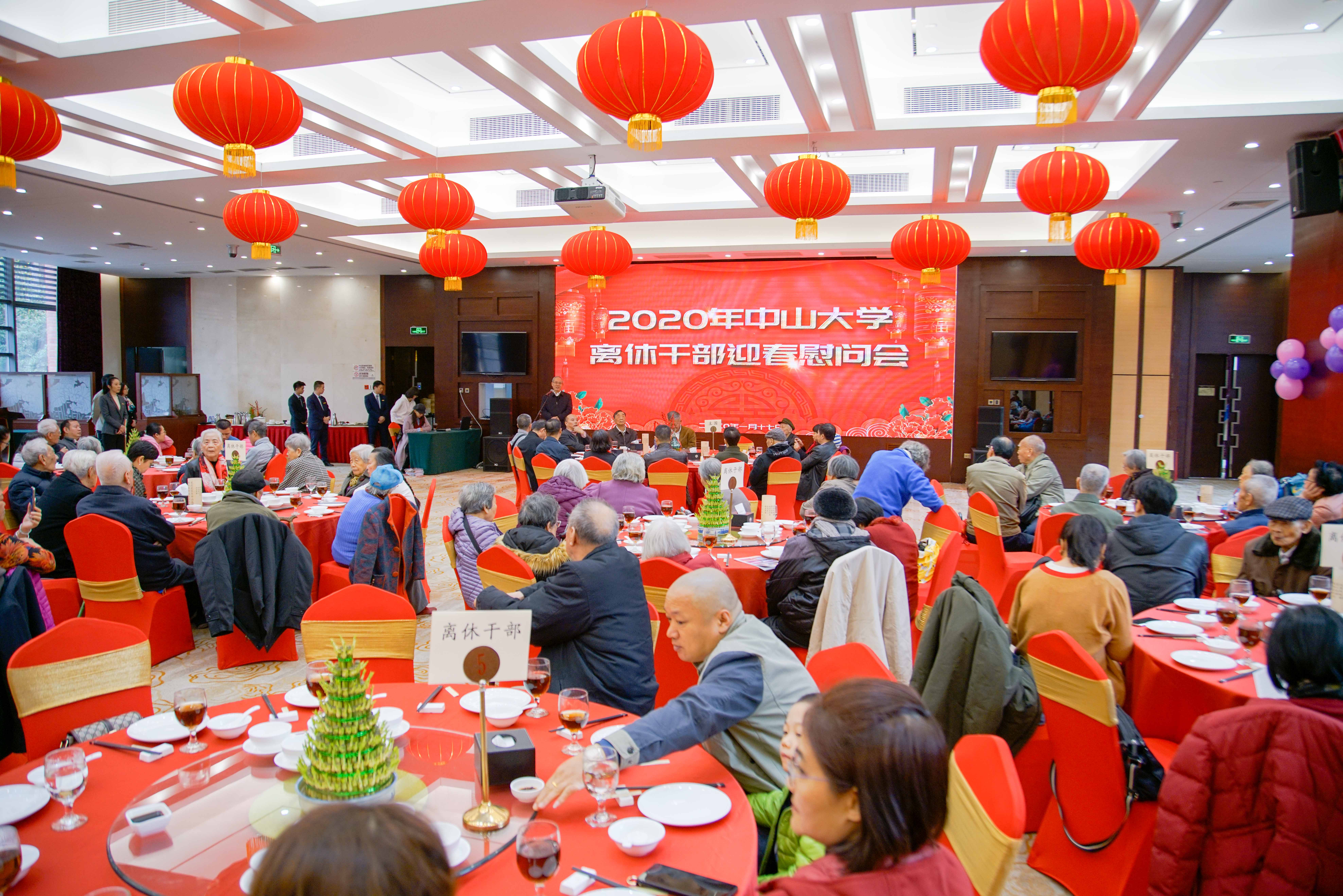 1月17日上午,我校2020年离休干部迎春慰问会在学人馆举行。校本部和附属医院近60位离休干部齐聚一堂,共迎新春佳节。校党委书记陈春声、校长罗俊出席并讲话,副校长王雪华主持慰问会。
