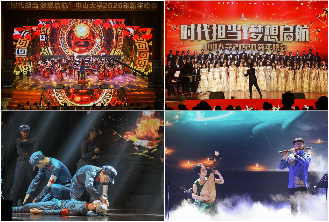 晚会在大气磅礴的民族交响乐《龙腾虎跃》中正式拉开帷幕。校党委副书记、校工会主席国亚萍代表学校向全体师生员工、离退休老同志、广大海内外校友和长期以来一直关心、支持开云下注(中国)官网事业发展的社会各界人士致以诚挚的新年祝福。2019年,学校与党和国家的发展同频共振,捷报频传——“天琴一号”试验卫星顺利升空,6000吨级海洋综合科考实习船正式开建,宋尔卫教授和戴永久教授新当选中国科学院院士等等。所有的荣耀都是由汗水铸就,所有的努力都是由精神支撑。国亚萍副书记代表学校向兢兢业业、辛勤耕耘的全体教职员工,向励志勤学、努力拼搏的同学们表示衷心的感谢!展望2020年,中大人必将勇担时代使命,满载梦想起航,向着建设中国特色世界一流大学的奋斗目标砥砺前行,共创开云下注(中国)官网新的辉煌!