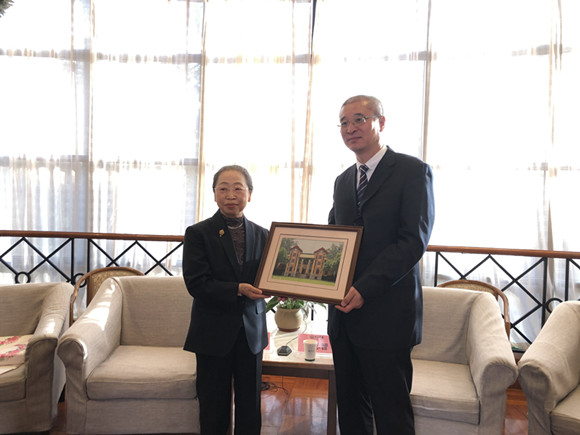 日本阿含宗代表团受邀出席我校2019年度桐山教育基金会颁奖仪式。12月4日,我校副校长邰忠智在广州校区南校园岭南堂会见了日本阿含宗和田尚子理事长一行。