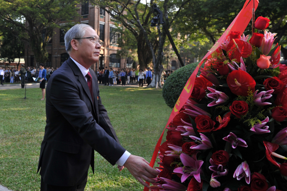 校党委副书记国亚萍、校园发展与管理委员会主任冯双、中山医学院党委书记吴忠道、珠海校区管委会主任陈有志分别主持广州校区南校园、东校园、北校园和珠海校区的敬献花篮仪式。各职能部门代表、教师代表、学生代表等观礼。