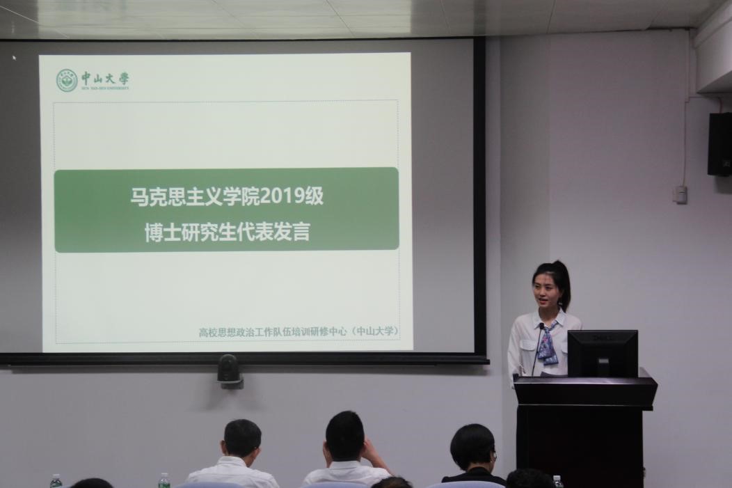 马克思主义学院2019级博士研究生杨莎作为学生代表发言。她表示,这是一次理论联系实际的历练,她将以高度的政治意识和责任感、饱满的工作热情履行好理论宣讲员的光荣职责,和联系的本科同学们共同在学思践悟中做马克思主义的坚定信仰者、积极传播者、模范践行者。