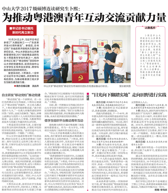 南方日报对卜熙的报道——为粤港澳青年互动交流贡献力量