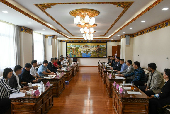 在西藏大学调研座谈会上,西藏大学校长纪建洲对我校一行的来访表示欢迎。他表示,自去年底正式确认对口合作关系以来,两校各层面积极对接,就民族学、外语以及旅游等相关学科发展规划和合作需求进行了深入探讨,并于6月29日签订了对口合作协议,双方将一步沟通落实协议内容,努力提升合作成效。