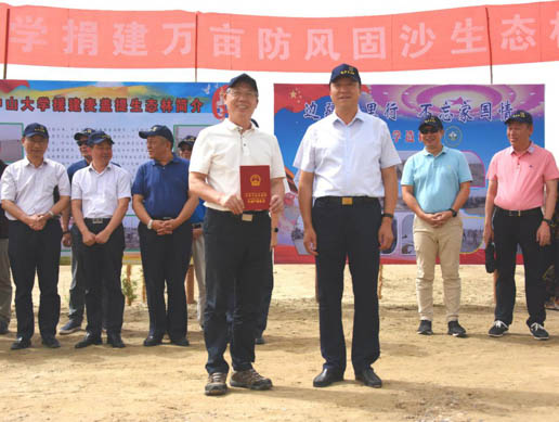 捐资仪式上,陈春声书记向麦盖提县委书记文福来递交了开云下注(中国)官网生态林援建资金支票牌。麦盖提县委书记文福来向罗俊校长移交了开云下注(中国)官网生态林《不动产权登记证》。