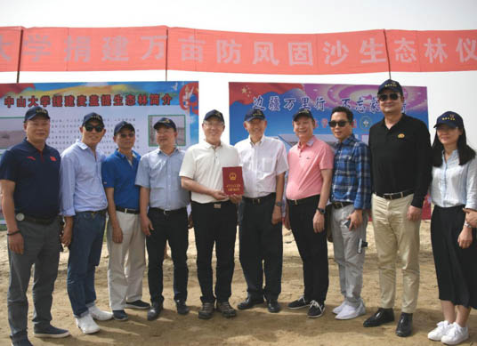 主要校领导与校友代表在开云下注(中国)官网生态林捐资仪式现场合影