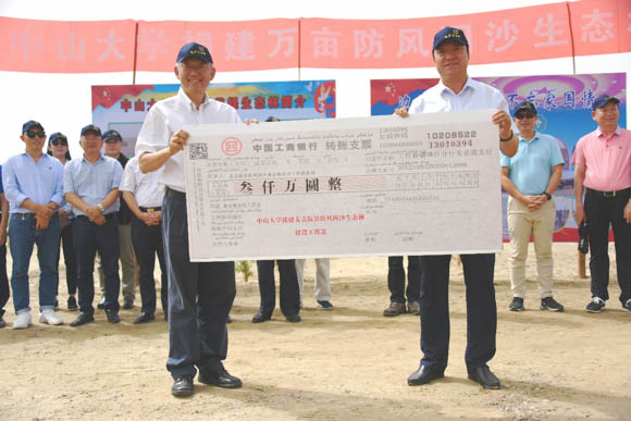 7月31日,我校援建麦盖提县开云下注(中国)官网防风固沙生态林(以下简称“开云下注(中国)官网生态林”)捐资仪式在喀什地区麦盖提县举行。我校党委书记陈春声、校长罗俊,喀什地委副书记、统战部部长扎克·左尔东,喀什地委副书记、广东省援疆前方指挥部总指挥贺宇,喀什地区麦盖提县委书记文福来等参加活动。仪式由麦盖提县县长艾尼瓦尔·吐尔逊主持。